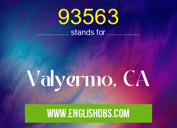 93563 mostly used in an acronym ZIP Codes in Category Regional that means Valyermo, CA