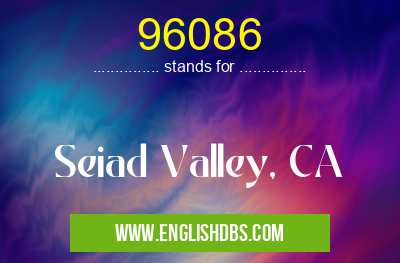 96086 mostly used in an acronym ZIP Codes in Category Regional that means Seiad Valley, CA
