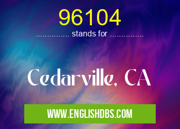 96104 mostly used in an acronym ZIP Codes in Category Regional that means Cedarville, CA