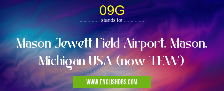 09G mostly used in an acronym Airport Codes in Category Regional that means Mason Jewett Field Airport, Mason, Michigan USA (now TEW)