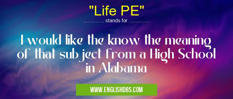 "Life PE" mostly used in an acronym Schools in Category Community that means I would like the know the meaning of that subject from a High School in Alabama